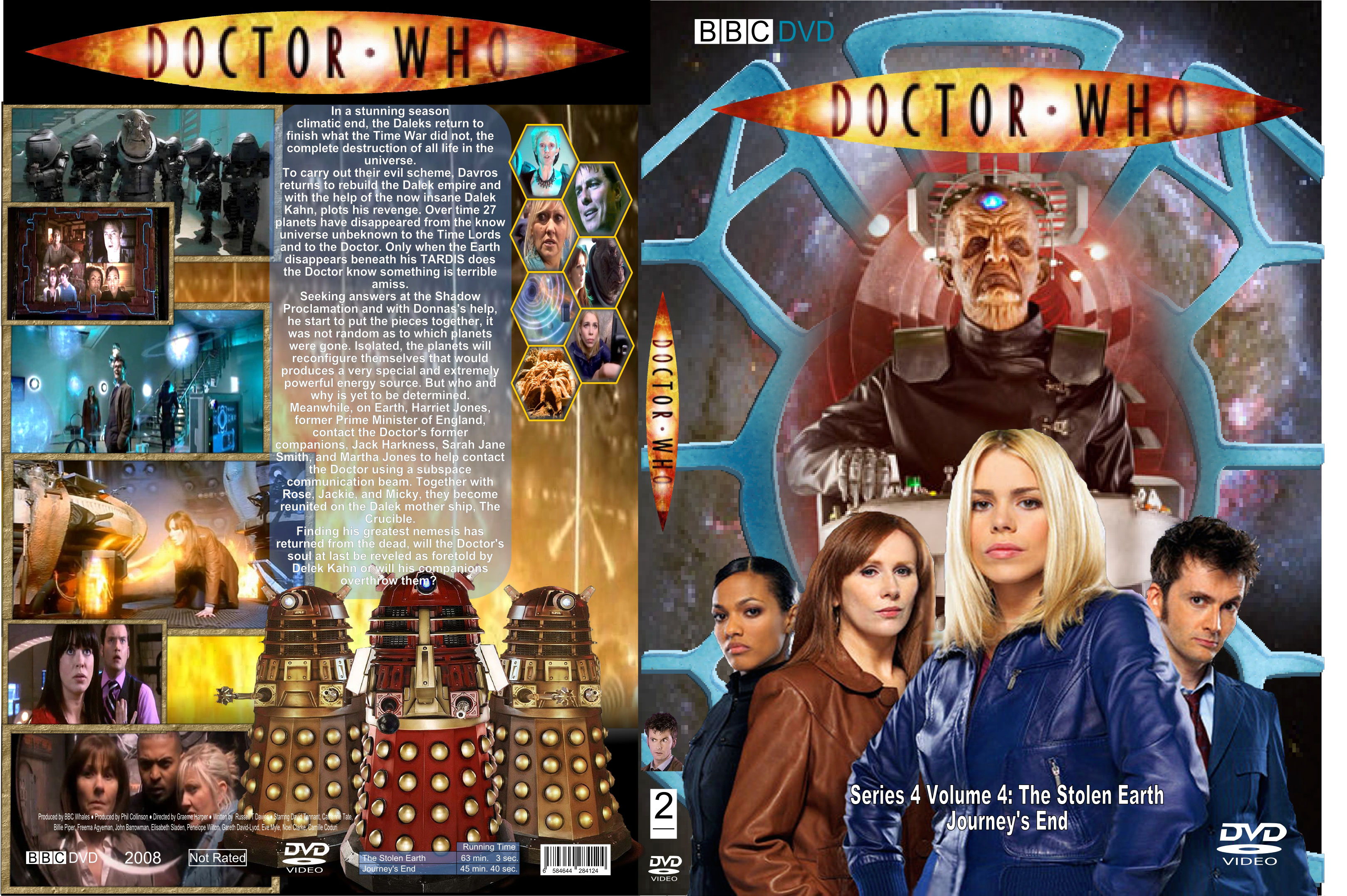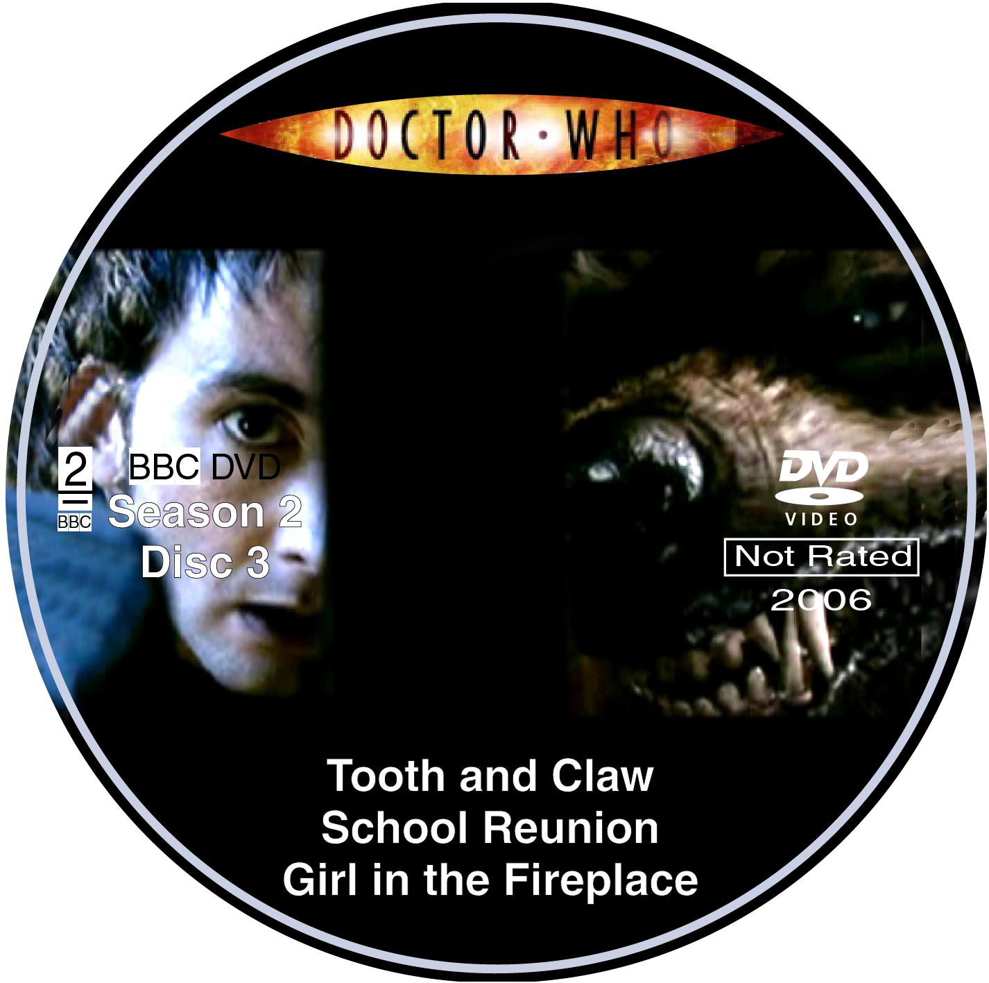 This is a series of DVD covers and labels that I created for the reboot of the Doctor who series. Starting from season 2 with the web background on the front covers, those covers I created from scratch. The backside of each cover as well as each DVD label are my own design creations. These labels have been uploaded onto various websites for free downloads for which most no longer exist.